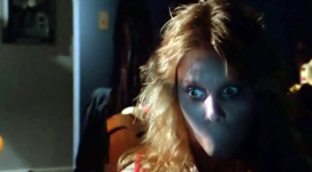 The second example of disturbing facial distortion is far more ostentatious, but it affected me mightily just the same. The Tom Holland-directed Fright Night (1985) was one of the best horror comedies of the decade, faultlessly combining hilarity, pathos, and terror into a wildly entertaining whole. Charley (William Ragsdale) is a regular high school kid who lives with his single mother (Dorothy Fielding), has a goofball horror-nerd best friend named Evil (Stephen Geoffreys), and a goody-two-shoes girlfriend named Amy (played by Amanda Bearse, who would later achieve great fame as neighbor Marcy on the long-running and much-beloved TV show “Married…With Children”).