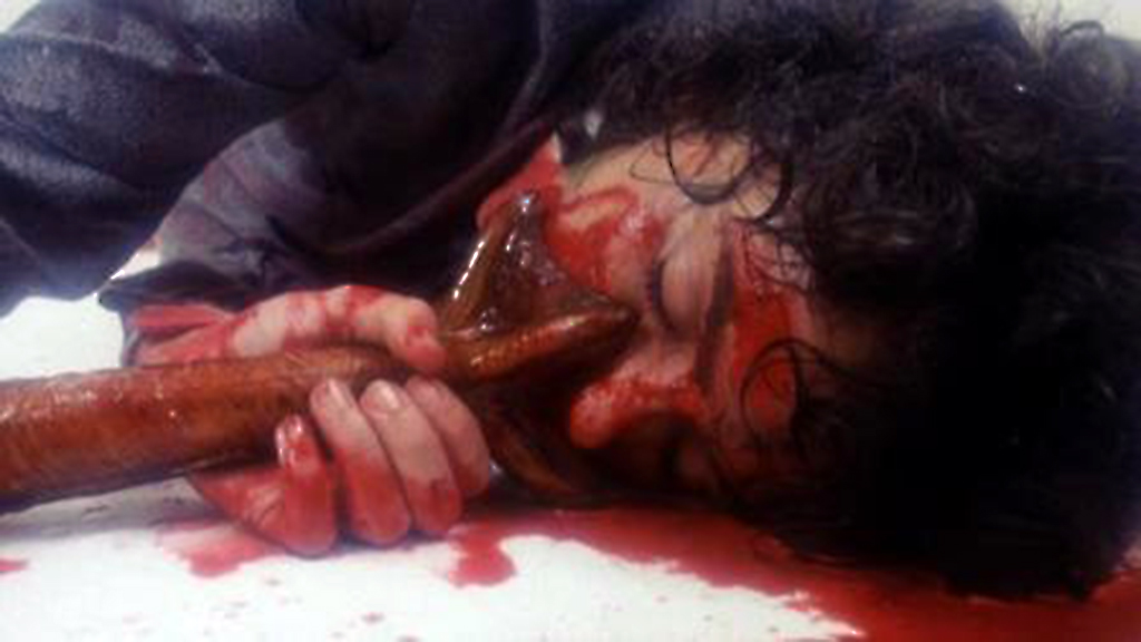 So it’s all a very awkward family drama into which more weirdness soon manifests itself. Tony wakes up in the middle of the night covered in blood that isn’t his. The next day he catches his father eating the eggs of his pet snake, has a freakout, and hauls ass out of the house. Sam chases after him, reassures him that everything is fine and that he just needed to eat those eggs because he’s different now, and wouldn’t Tony like to be different too? Tony seems to relent, because hey, that’s his long-lost dad, so Sam creepily puts his lips on the kid’s neck and either starts sucking blood from him or inserting something into the blister he makes there.