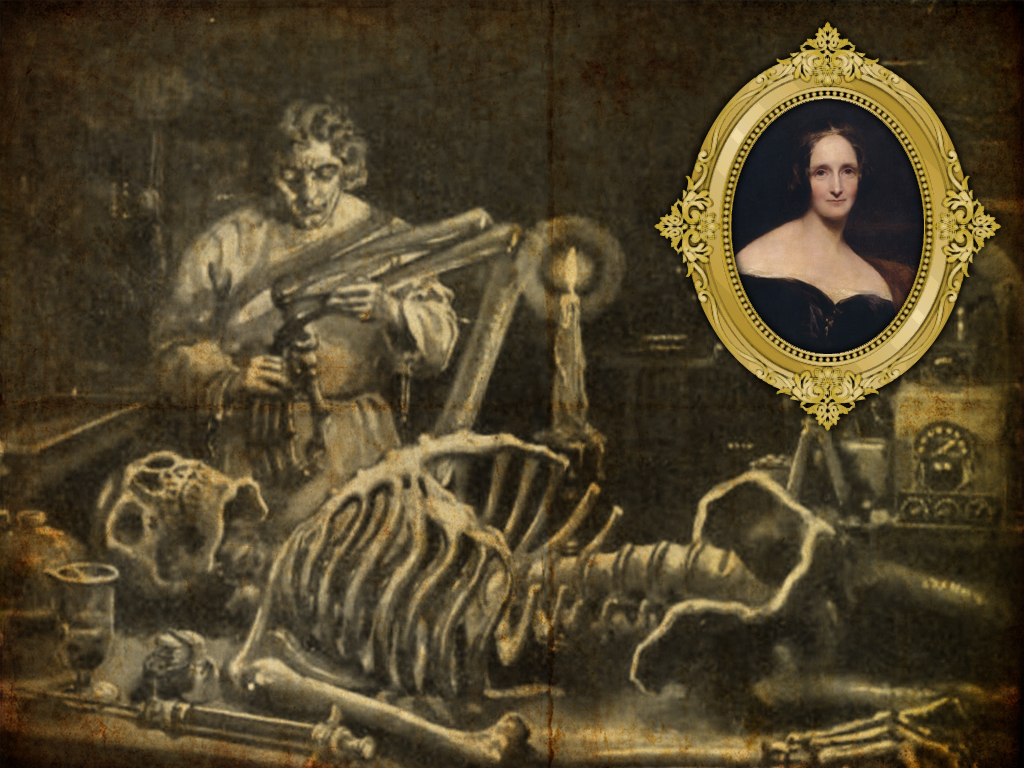 Mary Shelley, however, couldn’t think of an idea for a story, and had to respond with a frustrated “No” when asked by the others if she had begun work on it. But then, one night, she had a terrible nightmare. She woke violently amid the sounds of the storm howling outside. The dream had been so vivid that she had a difficult time believing it hadn’t been real. Since she was too shaken to sleep, she began writing down her dream, in which “a pale student of the unhallowed arts” used bits of corpses to create a man. “By the glimmer of the half-extinguished light,” she wrote, “I saw the dull yellow eye of the creature open; it breathed hard, and a convulsive motion agitated its limbs.”