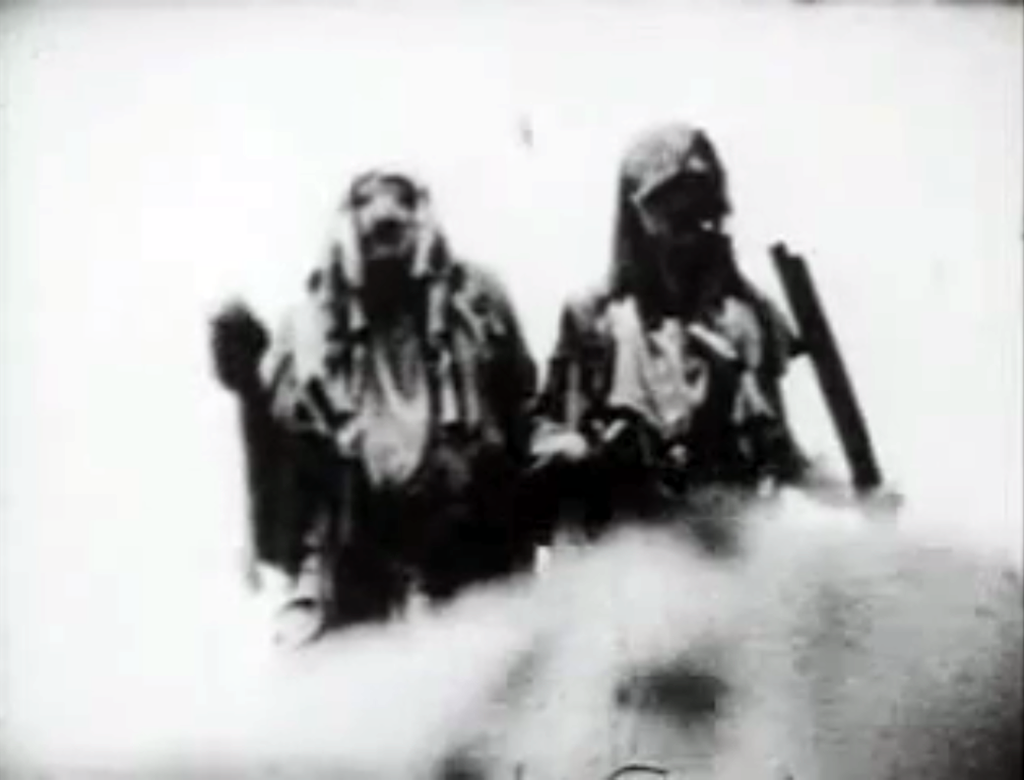 The nomads, apparently peeved that someone made off with their toy, begin following, gesturing at her like GET THAT UPPITY WOMAN WHO TOOK OUR FREE NAKED MAN, BUT FIRST LET’S BASH THE MAN’S HEAD IN WITH A STICK WHEEEEE and then it looks like they punch him in the dick too, and then maybe pull it off, but the way the film is shot it’s kinda hard to tell. Sounds like something they would do, though. Fuckin’ nomads.