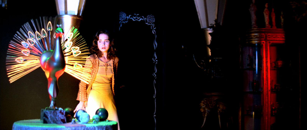 First off, I have to say that Suspiria is probably one of the world’s most beautiful films to look at. Argento not only shot the spectacular set in super-saturated hues and utilized special lenses and light filters, but he also used the same unusual Technicolor process that was used for The Wizard of Oz. Every frame of the film is like a strikingly composed light painting of a particularly gruesome fairy tale, with stark shadows and garish shafts of red, blue, green, and yellow light falling across the baroque and hyper-violent murder tableaus. I mean, just check out some of these stills: