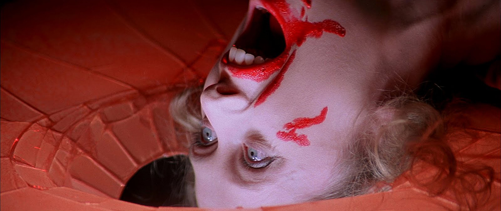At this point in the film, we only know the directress by reputation, and are not yet really aware that she is indeed the powerful witch Mater Suspiriorum. Even so, you know something is going on with that scary-ass woman behind the sheet, and the scene is perhaps even more affecting, given what we don’t yet know about her. Coming about halfway through the film, it’s a fantastic tension-building scene, laden with mystery and foreboding. Had Argento continued to make movies in this particular and distinctive style, instead of losing his mojo somewhere around 1996, just think of the further masterpieces he could have produced as he grew as an artist. Alas, that’s not how the cauldron bubbled, but at least we’ll always have Suspiria.